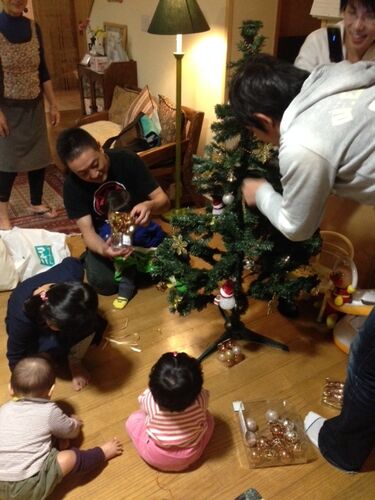 クリスマスまで1ヶ月を切りました。午後、齋藤さんがニト*からクリスマスツリーを買って来ました。お客様のパパや子ども達も混じって、皆でワイワイと飾り付けをしました。 完成したツリーを階段下にセットしました。イルミネーションはないけれど、お飾り…