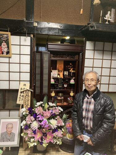 今日は山形のおばあちゃん(齋藤おじちゃんのお母さん)の1周忌でした。 お寺さんでおじちゃんと章子さんと従兄弟(従姉妹)数人が集まり、副住職さんが執り行ってくれたそうです。お供物のお花と果物をおばあちゃんの家に持ち帰って写真を撮りました。 お…