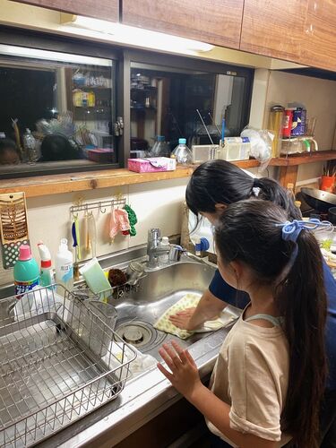3月もあと残りわずか。 子供達は春休みを満喫しています。今日も娘の親友れみちゃんと一緒に助産院に泊まると2人仲良く過ごしています。れみちゃんのママからのお泊まりの条件は『1つ何か見つけてお手伝いをすること。』早速2人は夕飯の後の食器を洗って…